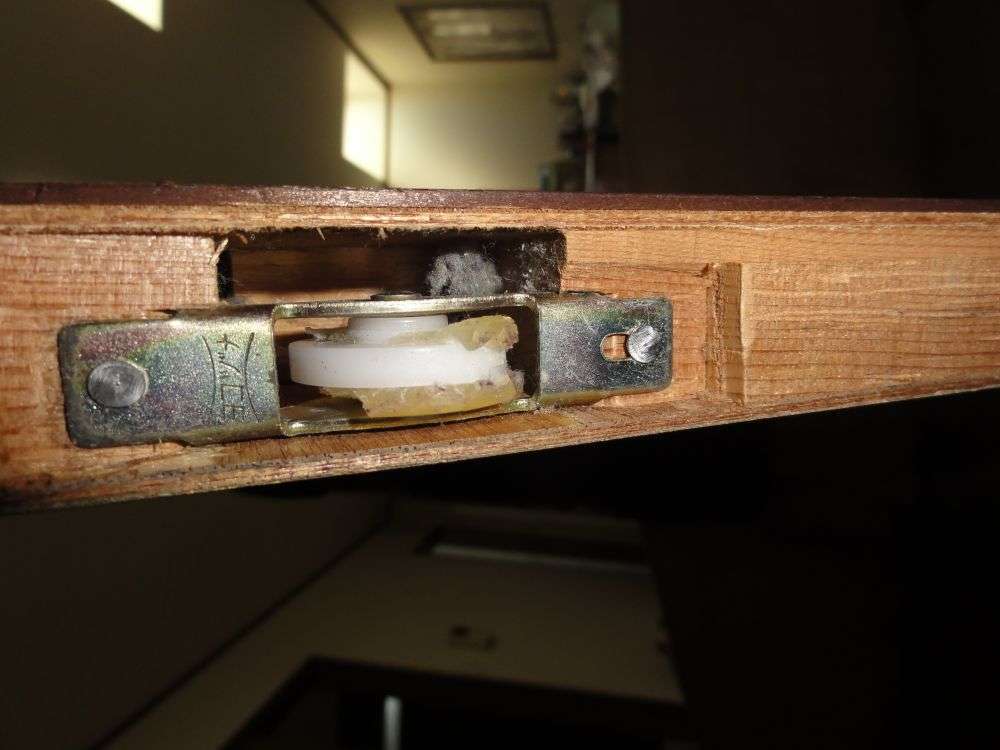 o 新しい戸車を溝にはめ込み、ネジで固定します。必要に応じて高さを調整します。