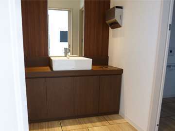 防水性: 洗面所は水がかかりやすい場所なので、防水性の高い素材を選ぶことが重要です。ビニールフローリングや防水加工された木材が適しています。