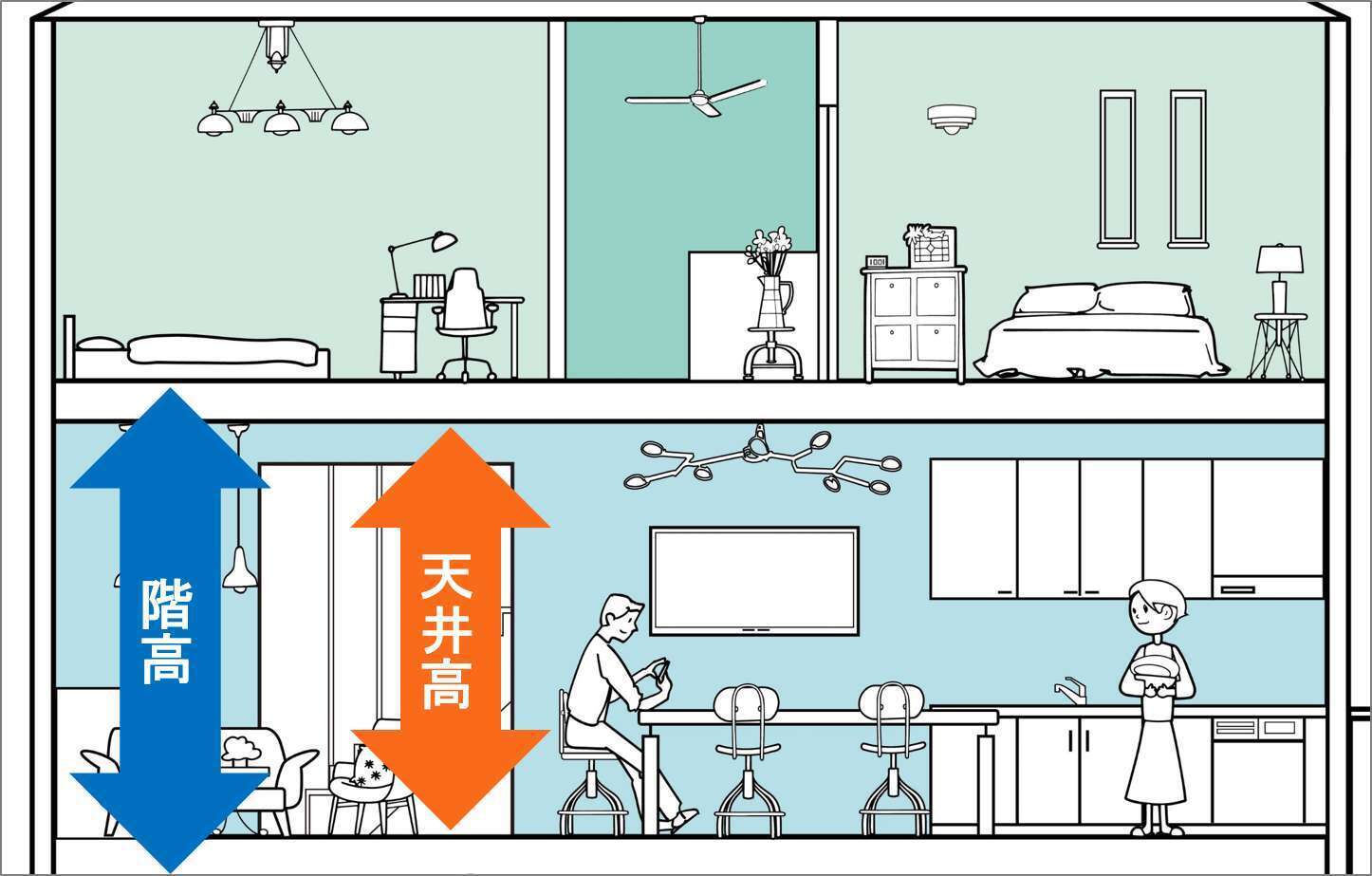 均一な冷暖房: 天井からの風が均一に広がるため、部屋全体を効率的に冷暖房できます。