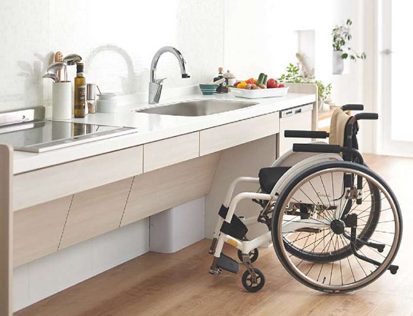バリアフリー設計: 車椅子の使用を考慮し、カウンターやシンクの高さを調整し、足元のスペースを確保します。