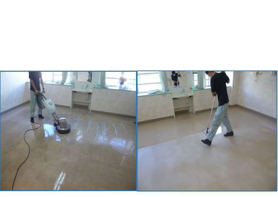 事務所・店舗・美容室・理容所など フロア洗浄&剥離・ワックス塗布を施工します。
