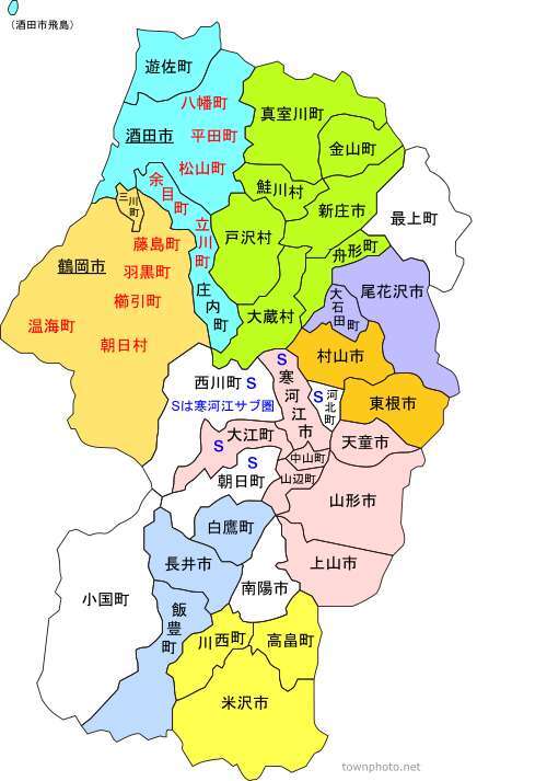 真室川町、大蔵村、鮭川村、戸沢村 東置賜郡高畠町、川西町 西置賜郡小国町、白鷹町、飯豊町 東田川郡三川町、庄内町、