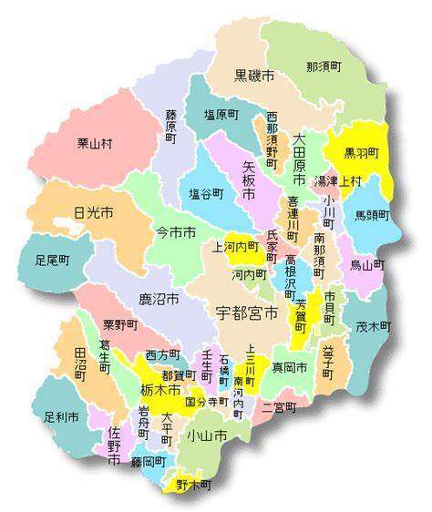 宇都宮市 足利市 佐野市 栃木市 鹿沼市 日光市 小山市 真岡市 大田原市 矢板市那須塩原市 さくら市 那須烏山市 下野市 河内郡上三川町 芳賀郡益子町 芳賀郡茂木町 芳賀郡市貝町芳賀郡芳賀町 下都賀郡壬生町 下都賀郡野木町 塩谷郡塩谷町 塩谷郡高根沢町 那須郡那珂川町 那須郡那珂川町