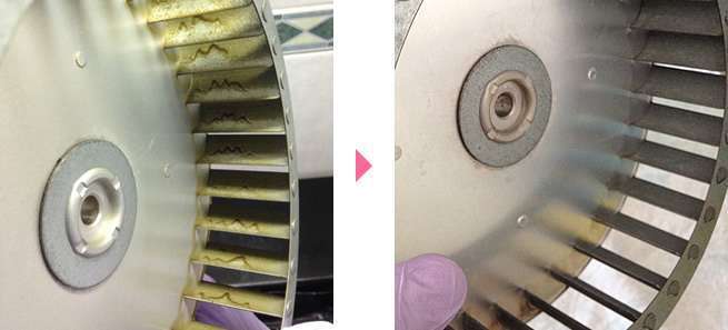 レンジフード全体ではなくてシロコファンの中&プロペラに油汚れがついているか?いないか?を見ます。
